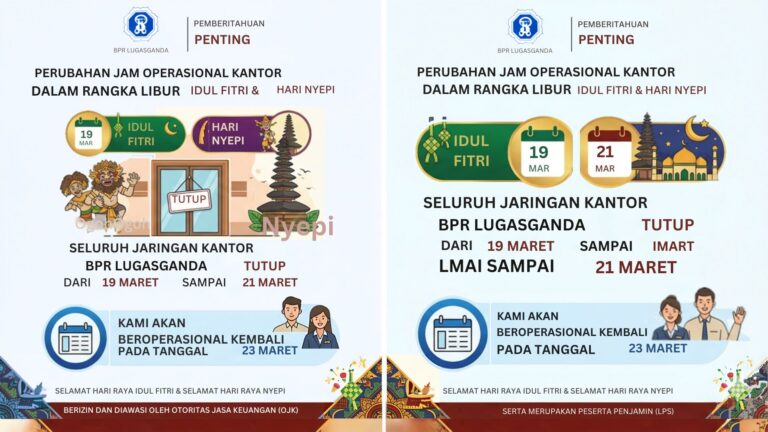 Pemberitahuan Perubahan Jam Operasional Kantor BPR Lugasganda pada Libur Idul Fitri dan Hari Nyepi